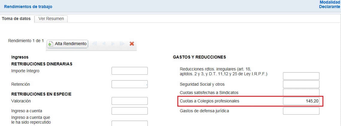 Només cal que omplis la opció “Cuotas a Colegios Profesionales” a la teva declaració:
